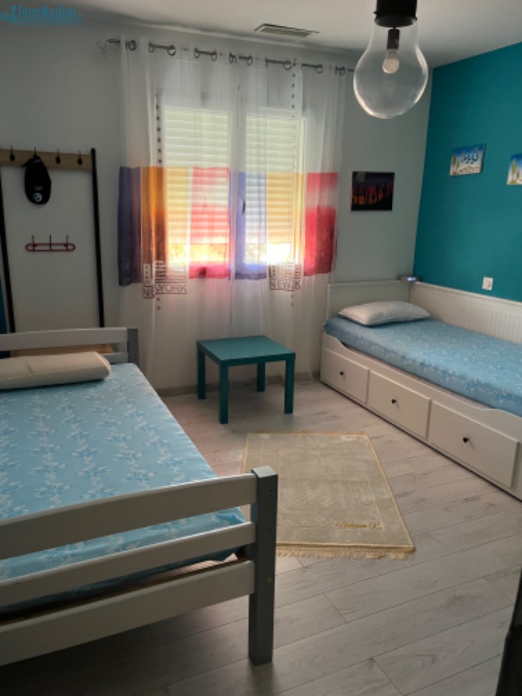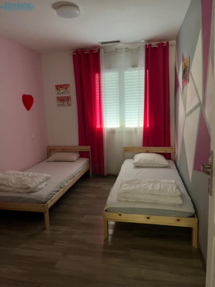 Vous avez 3 chambres une grande cuisine tt équipé avec un grand séjour et une grande télévision