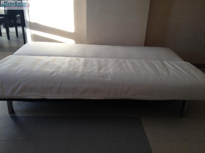 A vendre tres beau canapé convertible semili cuir bi color blanc gris.