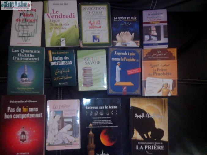 Vend livre bon état Pack histoire des prophètes 24 livre : 15 euros au lieu de 25 Livre Les Chants et la musique : 4 euros au lieu de 6 Livre Le Mariage en Islam : 3 euros au lieu de 5,90 Le Noble Coran : 2 euros au lieu de 3,50 Livre La Salafiyya du mythe a la realité : 4 euros au lieu de 6 vend pack 14 livres divers sujet : 30 euros au lieu de valeur 45 pack 3 petit livre : 3 euros au lieu de 6 Possibilité achater tout l'ensemble a 50 euros au lieu de 58 Envoi par la poste en colissimo possible