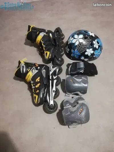 Bonjour je vend un roller ado à quatre roue avec toutes ses protections et casque propre en bon état général la taille entre 12 et 38 réglable pour plus d'info veuillez me contacter. Cordialement