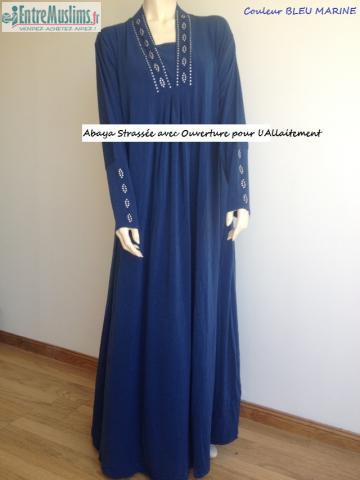 Magnifique Abaya idéale pour l'allaitement : ouverture grâce aux 3 boutons "pression" et fente au niveau du sein;