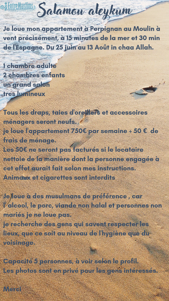 Salamou aleykum je loue mon F4 au minimum à la semaine, sur les photos ne figurent pas la chambre minimaliste lit king size, et chambre lit superposé et lit enfant et bureaux.