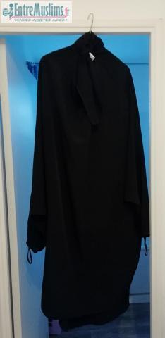 Cape de jilbab noire intense al bassira tissu microfibre koshibo