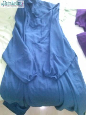 Je vend 2 Jilbeb , un jilbeb bleu ciel une pièce taille 1 de la marque Etoile d'Orient , porter seulement une fois pour l'essayage , il est neuf. Et un jilbeb 2 pièce jupe de couleur violet/prune taille unique coupe papillon neuf jamais porter. Je les fait a 15euros l'unité in sha Allah.Pour plus de renseignement me contacter par sms in sha Allah au 0668287157. Barak'Allahoufikoum.