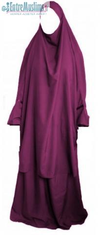 Je vends ce Jilbeb AL bassira 2 pièces (cape+ jupe) tissu caviary prune taille 2 (1,63m à1,68m)