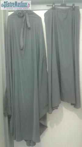 Jilbab al manassik gris tissu peau de peche (infroissable) manches papillon (made in france)