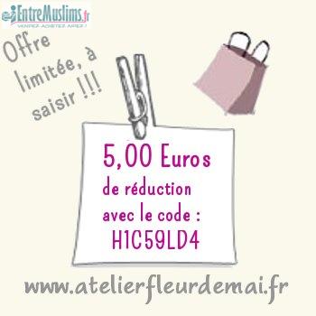 Profitez de 5 Euros de réduction, sans minimum d'achat et jusqu'au 31 janvier sur toute la boutique en ligne : www.atelierfleurdemai.fr