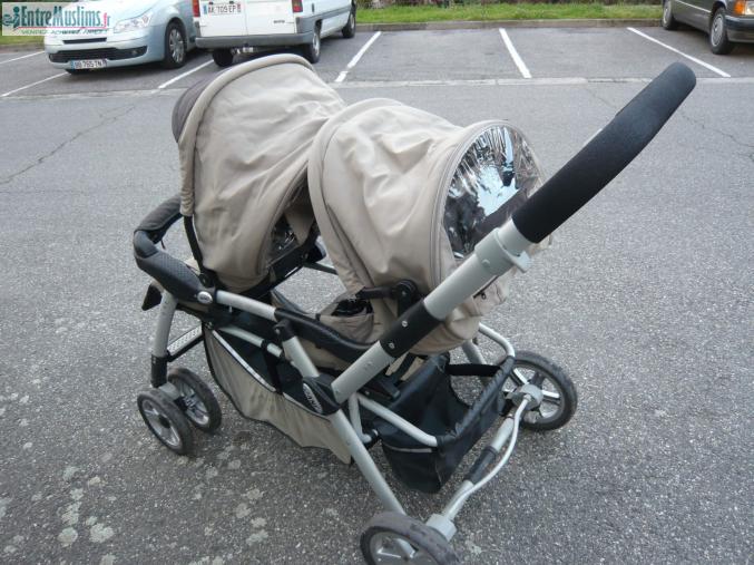 poussette double propre en bon état, facile à plier et à manier. Vendue avec habillage pluie.