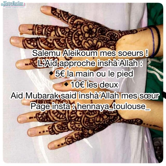 Vous pouvez me contacter sur ma page facebook hennaya toulouse ou sur mon insta hennaya_toulouse_