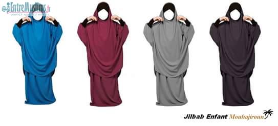 Jilbab deux pieces ENFANT avec bonnet intégré et manches en elasthane, une poche au niveau de la jupe et un scratch au niveau du bandeau.