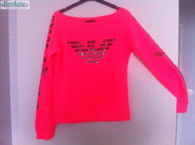 pull armani taille S, mis 1fois, couleur rose fluo