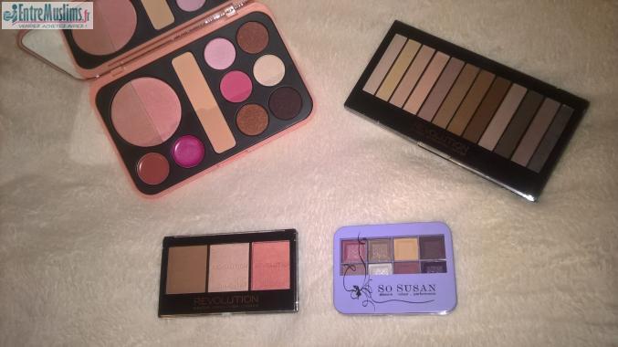 En bas à droite : Petite palette de la marque SoSusan 10 euros (Fards à paupières poudre liquide)