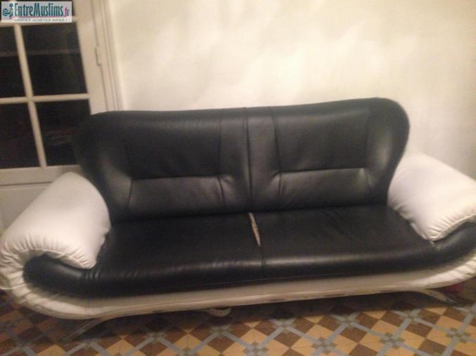 Salam a3laykoum je vend mon canapé noir et blanc , 3places .