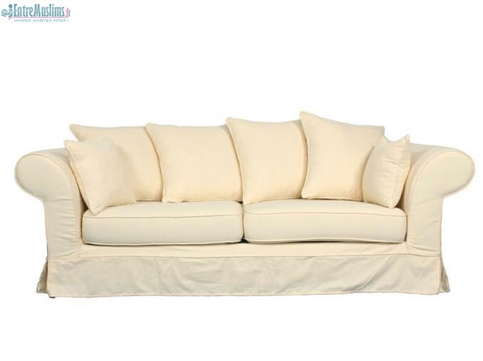 je vends un canapé tissu beige clair moderne déhoussable avec fermeture éclair impeccable valeur 699 vendu 90 euros