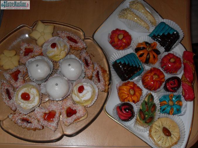 bonjour je vous propose des pâtisseries orientales en tout genre : glaçage, miel, noix de coco, sucre glace, chocolat, gâteaux secs...tout les modèles ne sont pas sur la photo, vous pouvez également me dire les sortes que vous voulez je les ferai.je réalise également des gâteaux style pièce montée, tarte,mini tartelette,...baklawa, corne de gazelle, makrout,...pour tout évènement.le prix est à discuter selon la sorte et la quantité souhaité.