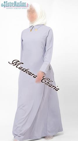 Abaya de haute qualité a contraste or sur le col. Manches boutonnées sur les manches . Fente dans le dos . Poche intégrer .Finitions impeccables .