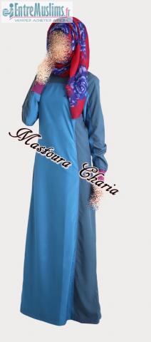 Abaya Street Bi color bleu de haute qualité . Avec col et poignet violet . Robe légèrement évasée . Finitions impeccables .