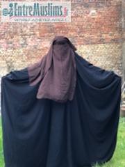 jilbab égyptien +1m65 col ouvert noir niqab intégré 15e