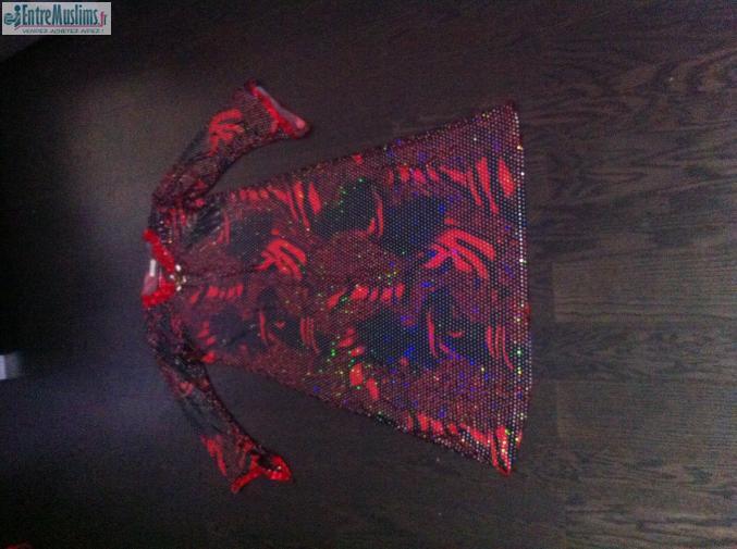 imprimé rouge et noire, grosse paillette argenté et décor perle et coquillage