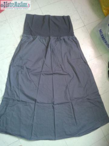 salam u aleykoum, bien entendu les 2 robes sont à mettre avec son mari.La jupe grise est non transparente taille L mais qui va à un M : 5 € ; la robe bleu qui va jusqu'aux chevilles mais elle est transparente un petit peu au dessus des chevilles : 8 € et la robe avec des cercles marron et vert, elle va jusqu'aux chevilles et n'est pas transparente : 15 € ;