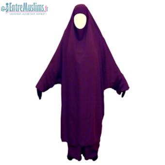 Je vend pour les soeurs des jilbabs 2 pièces cape plus jupe El Bassira couleur violet différentes tailles disponibles , manches papillon , bandeau intégré , tissu microfibre .