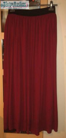 Mes soeurs je vend une longue jupe bordeau en mousseline , contient une doublure donc elle n'est pas transparente , peut très bien être porté pour toutes les tailles du 34 au 48