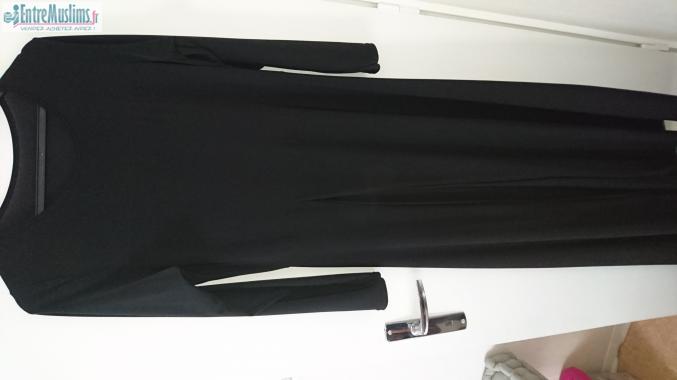 La robe est de couleur noir, opaque et est évasée au niveau du bas.