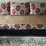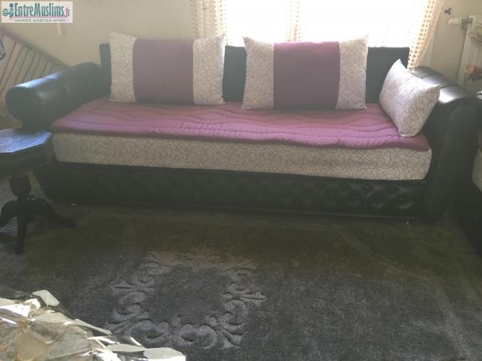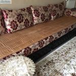 Vend ce beau salon moderne marocain. Composé de 3.banquettes de 2 m chacune. Modèle imitation cuir 1 er choix donc de bonne qualité. Vendu avec 3 modèles de rechanges. Avec un coin, plus 2 bouffes et 2 petites tables.