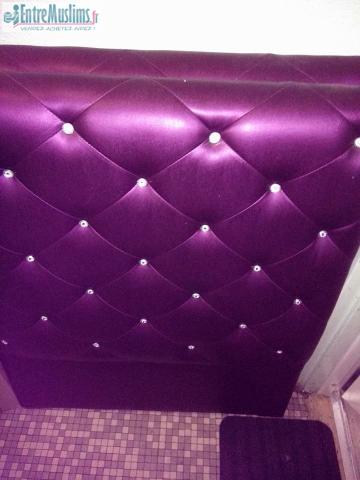 Vend tête de lit violette effet matelasser en bon état ( 90 cm)