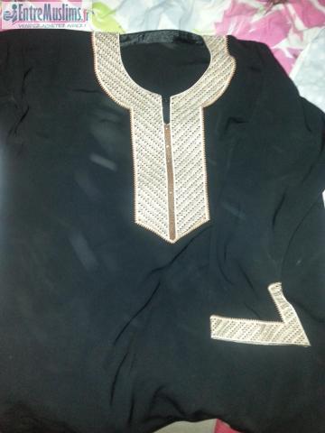 1...Abaya noir de dubai avec strass au col et aux manches. Pas transparent très bon tissu. Taille 60 (en longueur donc à peu près pr 1m70). 10e. BE