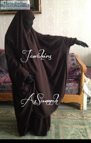 Jilbab "Assalafiyat" 2 pièces, manches élastiques, bandeau intégré, très large Allahi barik, tissu "royal", cape + jupe évasée
