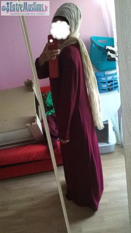 Je vends cette robe très joli en bordeau Allahi Barak, jamais porté (juste pour essayer) malheureusement je pensais que c'était du rouge car je la voulais en rouge pour une tenue à la mairie qui irai avec mon voile rouge , mais elle est bordeau, tres joli je vous met les photos