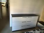 Chambre adulte 140*190 complète : 350 eur deux chevets spacieux à tiroirs 41*55 , une grande commode 6 tiroirs 140*45*75( petit à coup sur un des coins du au déménagement) le lit adulte qui bénéficie d'un éclairage néon au niveau de la tête de lit.