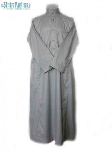 Tissu soyeux et léger glacé, col qarari(col de chemise), deux poches latérales , poche poitrine et boutons à la poitrine