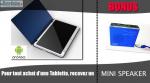 La Tablette est livrée avec un Mini Speaker. Vous pourez l'utiliser comme Lecteur de fichiers mp3. De plus celui ci compte un Port USB ainsi qu'un lecteur de cartes SD et Mini SD. ConnEntrée audio externe (fonction mini enceinte).