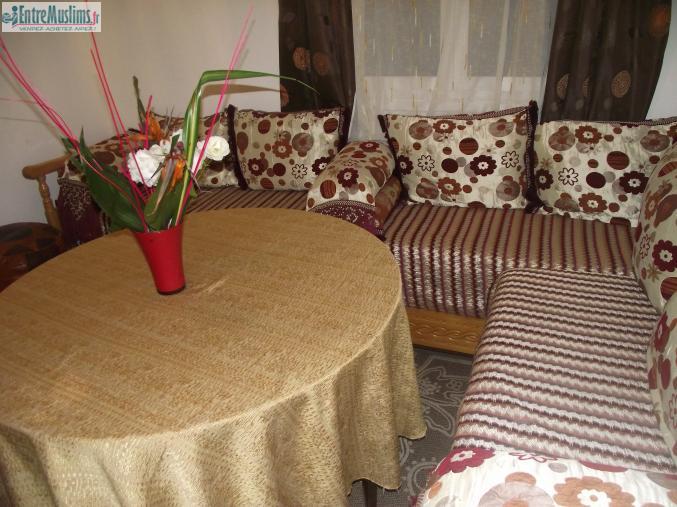 3 banquettes d'angles en bois travaillé + gros matelas rigides + tissus & coussins