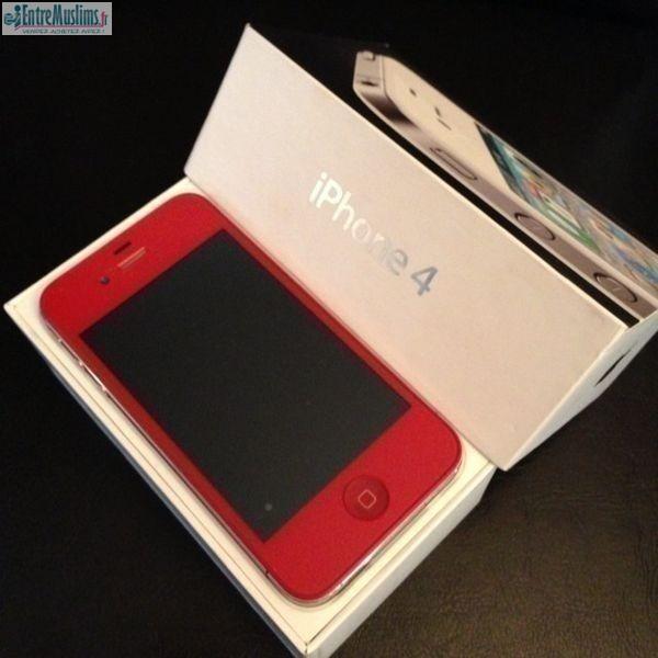 iPhone 4s, pas de rayure. Couleur rouge blanche et noire débloquer tout opérateur avec toutes ces accessoires ( Chargeur ; écouteur ; câble USB;ETC...) + une coque de protection. Il a été ouvert, activé et remis dans sa boite.