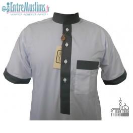 Jolie Qamis Al Hattami blanc et gris à manches courtes, plusieurs tailles proposées.