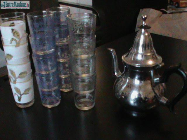 lot comprenant une théière et 16 verres a thé 15 euros