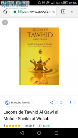 - leçons de tawhid cheikh al wusabi 5€ aulieu de 10€