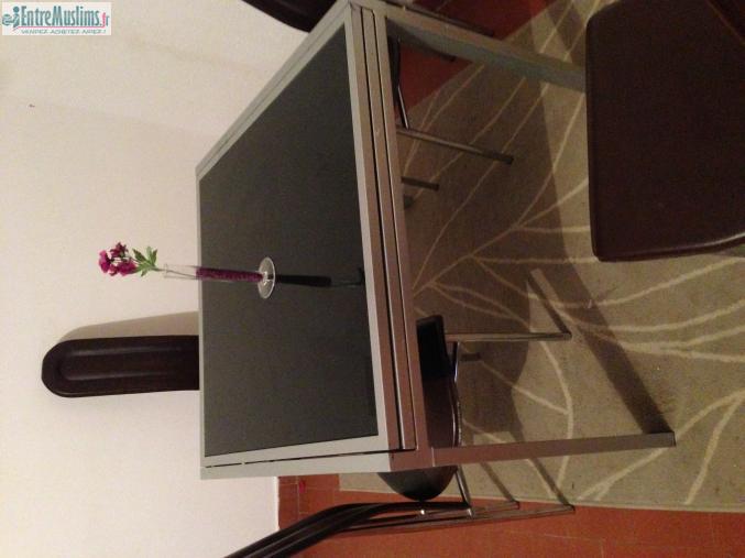 Elle est extensible en faisant coulisser les deux plateaux possibilité de manger jusqu a 8 personnes