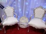 Le prix de 180 euros correspondent à la location de 2 fauteuils STYLE BAROQUE assise cuir blanc et argent ainsi que d'un coffret avec accessoires henné et gâteau bougie 1 panneau LED (rideau lumineux pour 48 heures. L'enlèvement et retour