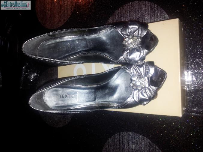 vend chaussures à talons TEXTO couleur gris argenté quasi neuve très peu porté