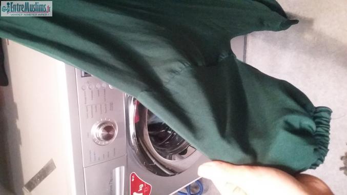 - Un vert sapin de la marque AL MANASSIK , 2 pièce manches élastique , jupe évasé , bandeau et cache menton intégré , en tissu wool peach peau de pêche , fluide et léger taille unique presque neuf vendu a 20 euros