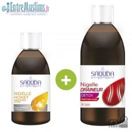 Découvrez les différents produits à base de nigelle de la marque SAOUDA (Draineur, miel, gélule, complément alimentaire, thé blanc).