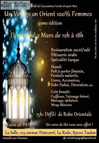 Après le succès des éditions précédentes et en essayant de toujours s'améliorer pour vous faire plaisir nous avons le plaisir de vous convier à la 4eme édition d'Un Voyage en Orient 100% Femmes.