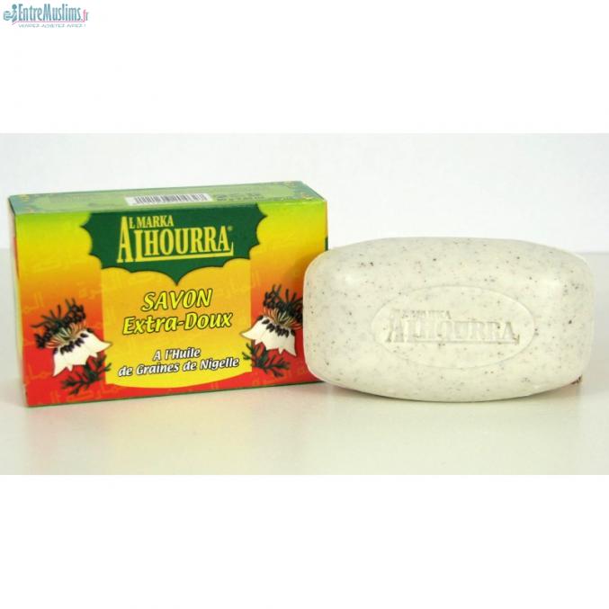 Savon extra -doux à l'huile de nigelle Al hourra, s'utilise aussi bien sur la peau qu'en shampoing solide sur les cheveux, il convient à tous types de peaux en particulier celles à problèmes L'huile de nigelle, s’avère être très efficace pour combattre les affections cutanées telles que : L'eczéma, le psoriasis, l’acné, les brûlures légères. A partir de cette huile aux propriétés étonnantes que l'on fabrique en Orient, on obtient un savon qui possède d’intéressantes vertus anti-inflammatoires. Le savon à l’huile de nigelle a des propriétés intenses pour le corps et les cheveux, il protège du dessèchement, des irritations, répare, régule les excès de sébum, aide à la prévention. Il assure brillance et bonne tenue des cheveux.