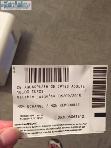 Salam alikom Je vend mes 4 billets aquasplach valeur 27euros je les vend 28euros a debattre si intéressé cotactez moi c urgent.