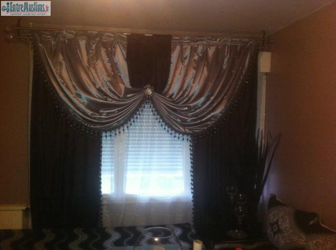 Salem aleykoum, Je vend ce magnifique double rideaux orientale adapté au salons orientaux mais pas seulement. Ce rideaux est bi matière : satin velour. Le voilage est blanc argenté.