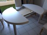 - Table à manger extensible. Accueille 4 à 6 personnes et permet d'adapter les dimensions de la table à vos besoins.